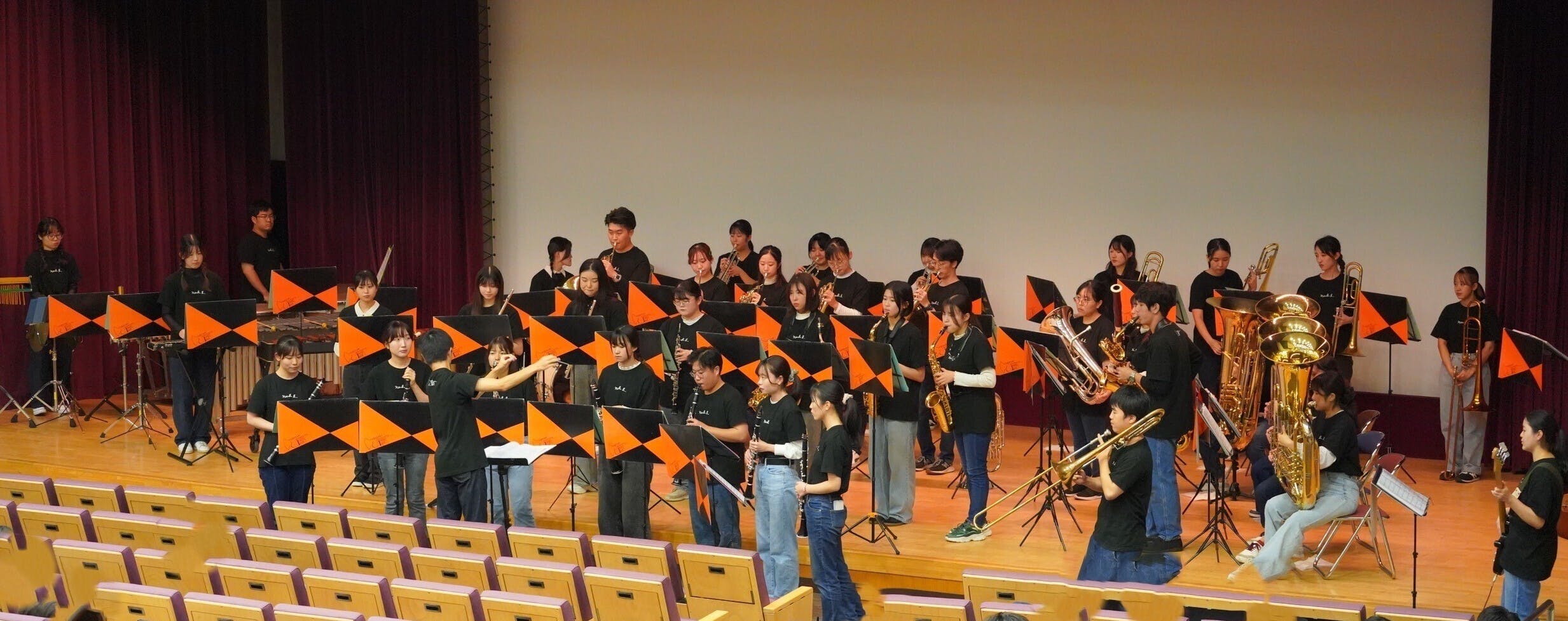 こんにちは、長崎大学吹奏楽部です!私たちは今1年生22名、2年生16名、3年生18名の合計56名で活動しています。
