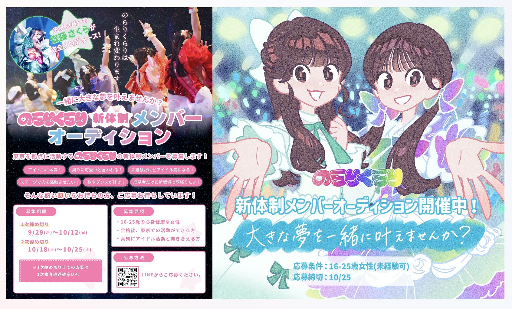 • 今回の新体制オーディションには、なんと300名以上の方が応募してくださいました。まずは、応募してくださったすべての皆さま、本当にありがとうございました。ここでは、どのような審査を行い、どんな流れでメンバーを決定したのかを少し詳しくお伝えします。⸻書類選考:約300名参加最初の書類選考では、プロフィール、志望動機、活動歴、写真などを拝見し、グループの方向性や今後の活動の中で活躍できる可能性があるかを判断しました。できるだけ多くの方に直接お会いしたかったため、条件に当てはまり、少しでも魅力や可能性を感じた方は積極的に通過とさせていただきました。通過者は 約150名 でした。⸻1次面談審査:約150名参加1次面談では、応募者一人ひとりと実際にお話をし、人柄・意欲・考え方・コミュニケーション力を中心に見させていただきました。・どんなアイドルになりたいか・グループ活動への理解・これまでの経験・夢に向かう姿勢や熱量短い時間ではありましたが、その言葉や表情から伝わってくる本気を感じることができました。ここで通過となったのは 約50名 です。⸻2次ダンス・歌審査:約50名参加2次審査では、実際のステージに必要な ダンス と 歌 の審査を行いました。・振り覚えの速さ・リズム感・表現力や魅せ方・声の安定感や個性・パフォーマンスへの向き合い方技術の高さだけでなく、この子と一緒にステージを作りたいと思えるかどうかを大切に見させていただきました。この審査を通過したのは 15名 です。⸻3次グループパフォーマンス審査:15名参加3次審査では、複数名による グループパフォーマンス を実施しました。ここでは、個人のスキル以上に「チームの中でどう動けるか」「どんな空気を作るか」という部分を評価しました。・協調性・チームワーク・ステージでの存在感・グループに入ったときのイメージ・周囲をどう活かすか、どう支えるか一人ひとりの個性が際立つ中で、メンバーとしての姿が見えはじめる、とても大切な審査でした。ここを通過したのは 10名 です。⸻最終面談審査:10名参加最後の審査となった最終面談では、それぞれの覚悟や価値観を深くお聞きしました。・活動への本気度・継続していくための覚悟・スケジュール管理や生活リズム・のらりくらりとして何を届けたいか・自分の夢と、このグループの未来をどう重ねていくかここでは、技術やその日のパフォーマンスだけでは判断できない、人としての強さや共に戦えるかどうかを重視しました。この審査を通して、ついに新体制メンバーが決定しました。最後に今回のオーディションは、私たちにとっても、応募してくれたみなさんにとっても、たくさんの想いがつまった時間でした。どの審査も、本当に簡単ではありませんでした。素敵な子が多すぎて、選ぶのが苦しくなることもありました。できることならもっと多くの子と一緒に進みたい気持ちも正直ありました。でもその中で、「この子たちとなら一緒に進んでいきたい」そう思えるメンバーに出会えたことが、とても嬉しいです。今回最後まで残ってくれた子たちは、歌やダンスのうまさだけじゃなくて、言葉や表情から伝わる気持ちが強くて、このグループを一緒につくりたいという想いがしっかり感じられました。応募してくれたみなさんの気持ちも努力も、ちゃんと届いています。そのうえで選ばれたメンバーと、これからしっかり前に進んでいきます。このオーディションに関わってくれたすべての方へ、心からありがとう。新体制はまだ始まったばかりですが、ここからもっと良いグループにしていけるように、みんなで頑張っていきます。これからの私たちを、どうか見守っていてください。 もっと見る