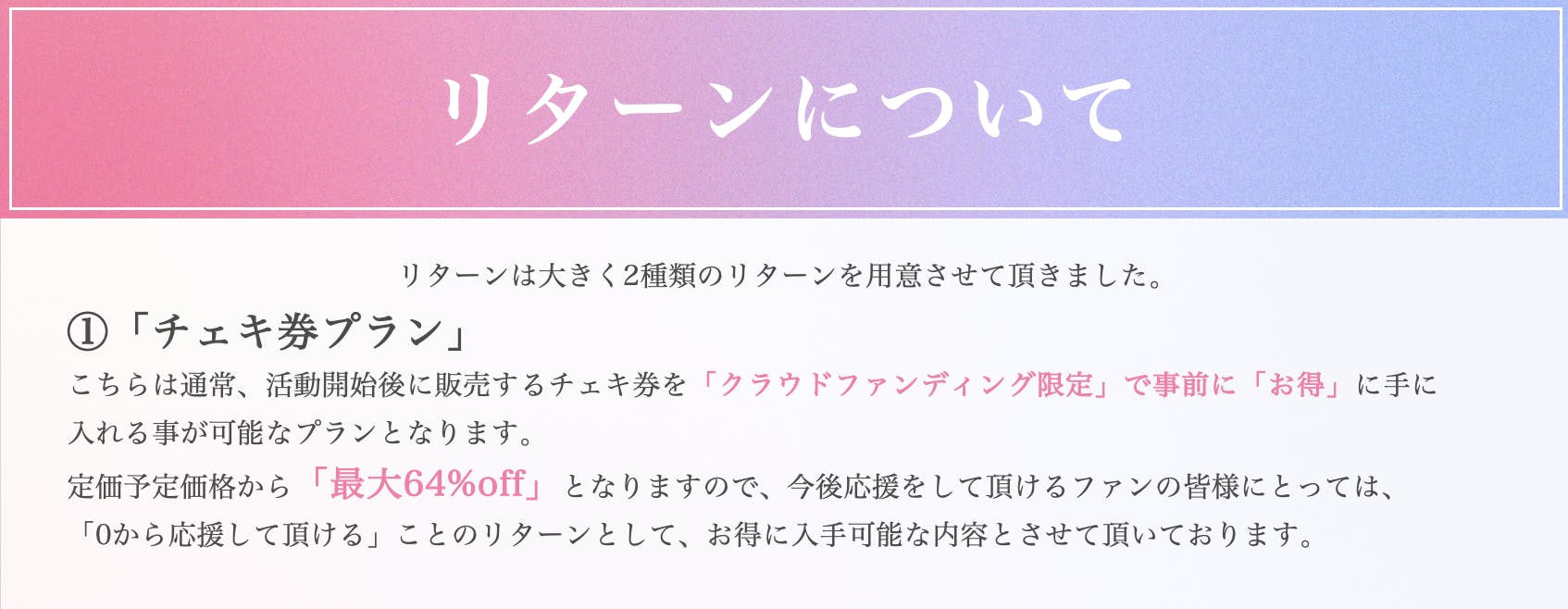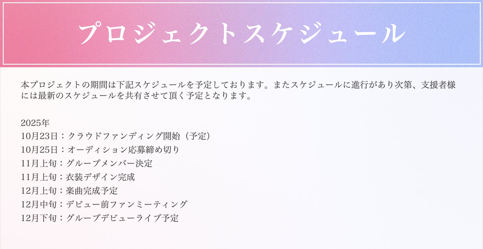• コンテンツ制作費(衣装/楽曲)他 ※CAMPFIRE手数料も含まれます。