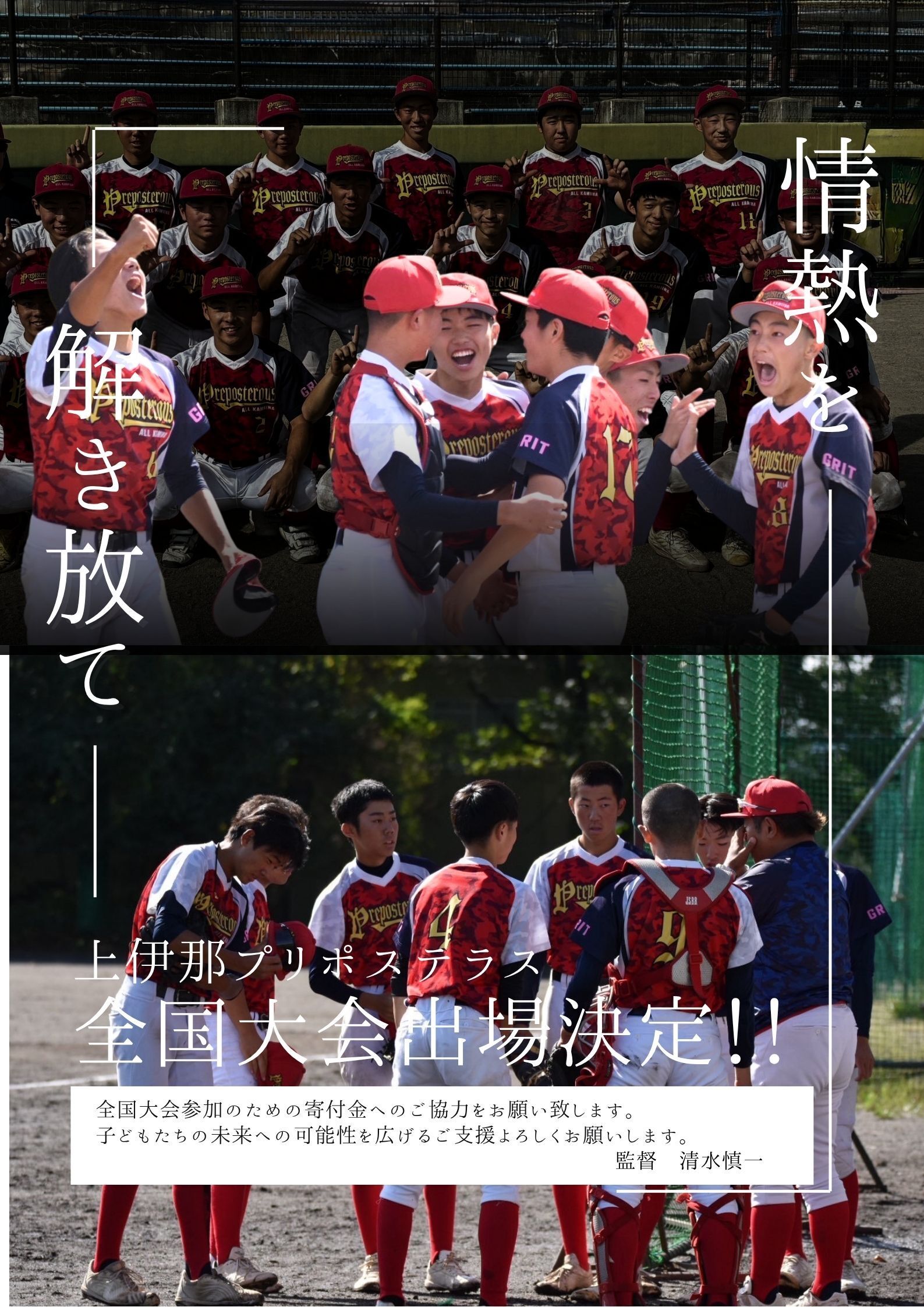 上伊那プリポステラス監督の清水慎一です。