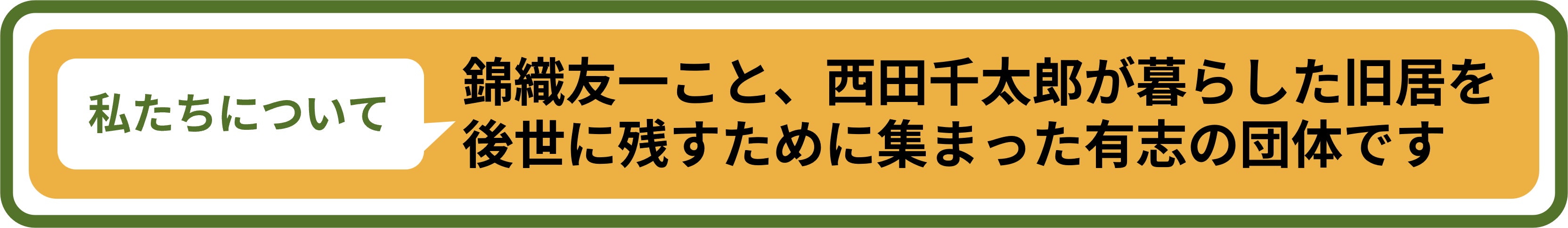 皆様からお寄せいただいた支援は、まずは西田千太郎旧居の修繕や改装費用に使わせていただきます。