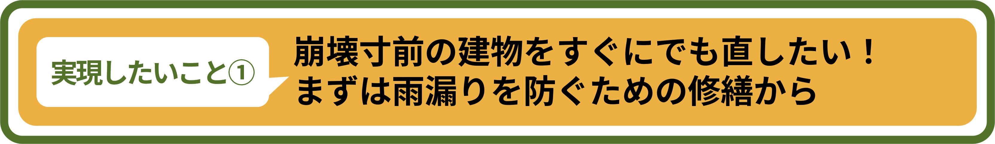 本格的にこの建物を崩壊を食い止め、長期保全するためには抜本的な修繕が必要、というのが専門家の見立てでした。そこでまず最大のリスクとなっている雨漏りを防ぐため、クラウドファンディングで屋根修繕の資金を確保しようと本プロジェクトを立ち上げました。