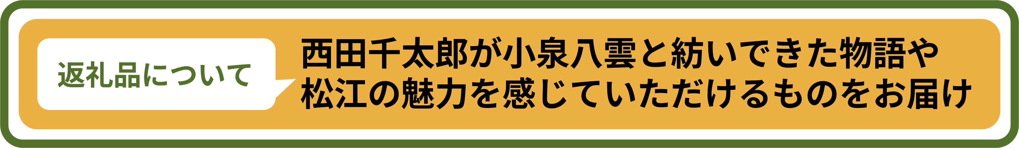 ◉修繕に使用する左桟瓦に記名させていただくメモリアルなコースのほか、西田千太郎にちなんだオリジナルグッズをご提供するコース、小泉八雲にまつわる特産品をお届けするコース、松江の名品をお届けするコースなど、バラエティに富んだコースを心を込めてご用意しました。