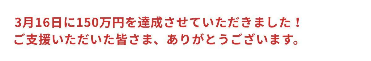 2026/03/17 09:22皆さまへこの度、クラウドファンディングの目標であった150万円を達成することができました!!応援してくださった皆さま、シェアしてくださった皆さま、気にかけてくださった皆さま、本当にありがとうございます。正直、ここまで来られるとは思っていませんでした。皆さんの応援の言葉やご支援に、何度も背中を押していただきました。そして、残り7日という期間、ネクストゴール160万円に挑戦することを決めました!このプロジェクトで集まった資金は、荘川でスタートするダイエット民泊の内装補修工事など、より安心して滞在していただくための環境づくりに使わせていただきます。この場所が、ダイエットに悩む方が・ホッとできる・自分を取り戻せる・少し前向きになれるそんな場所になればと願っています。クラウドファンディングも残りあと1週間となりました。最後まであきらめず、ネクストゴール160万円の達成を目指して頑張ります。もしよろしければ、引き続き応援やシェアで応援していただけたら嬉しいです。どうぞよろしくお願いいたします。みよしふみこ もっと見る