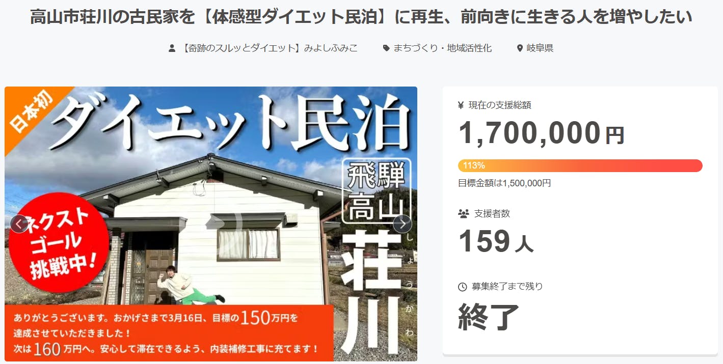 「ダイエット民泊×町おこし」クラウドファンディングに