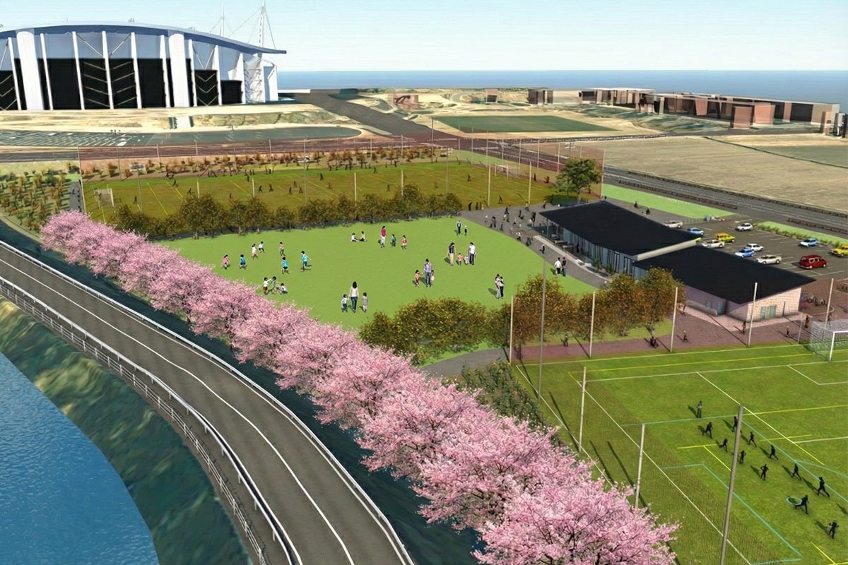 2026年9月1日(火)、豊田スタジアムの隣に、新たな交流と憩いの場「とよたスポーツパーク」が誕生します。サッカー、少年サッカー、ラグビー、少年ラグビーなどに対応した2面のグラウンドをはじめ、四季折々の風景が楽しめる天然芝の広場、東海地方初出店となるベーカリーカフェ、多目的ホールやコワーキングスペースにもなるライブラリーラウンジに更衣室・シャワーなどを備えたクラブハウスなど、多彩な施設が集う新しい空間です。