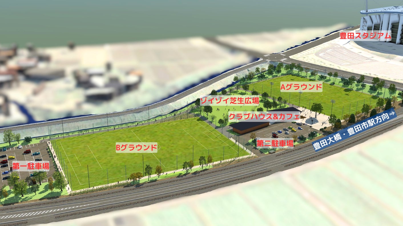 とよたスポーツパークとは、豊田市中央公園内に作られる、スポーツを通じて『人々の交流と健康増進』をはかり『スポーツツーリズムの進展とまちづくりへの貢献』を目指し、サッカー、ラグビーなどの人工芝グラウンド2面、クラブハウス、カフェ併設の新しい公園です。