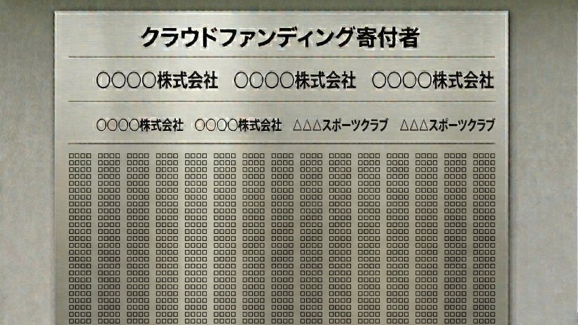 本プロジェクトにご参加いただいた証として、クラブハウスの壁面にお名前を掲載させていただきます。この場所づくりに関わってくださった皆さまの想いが、これから訪れる多くの人々へと受け継がれていきます。※ご希望に合わせお名前の掲載を除くこともできます。