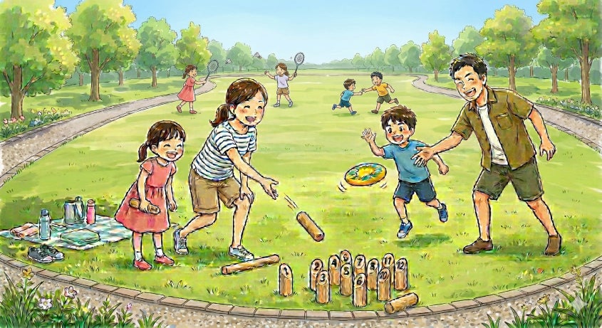 約4,400㎡の広さを誇る天然芝の広場では、四季を感じながらゆったりとした時間をお過ごしいただけます。クラブハウスではモルックやドッチビーなどの遊具の貸し出しも行い、子どもから大人まで気軽に体を動かしながら交流を楽しめる空間となっています。