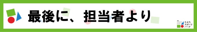 支援という形でも、体験という形でも、関わり方はさまざまです。ぜひ、あなたらしいかたちで「とよたスポーツパーク」づくりにご参加ください。皆さまとともに、この場所を育てていけることを心より楽しみにしております。