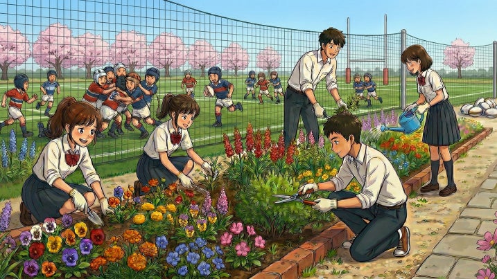 スポーツパークの中には、地元豊田市の高校生らとともに「みんなでつくる、みんなが楽しめる」コミュニティガーデンを作ります。色とりどりの花を咲かせるその様子は、園路を明るく彩ります。グラウンド利用者も、散歩にお越しになった方も、ランニングでのご利用時も、皆様に寄り添う花壇をお楽しみください。