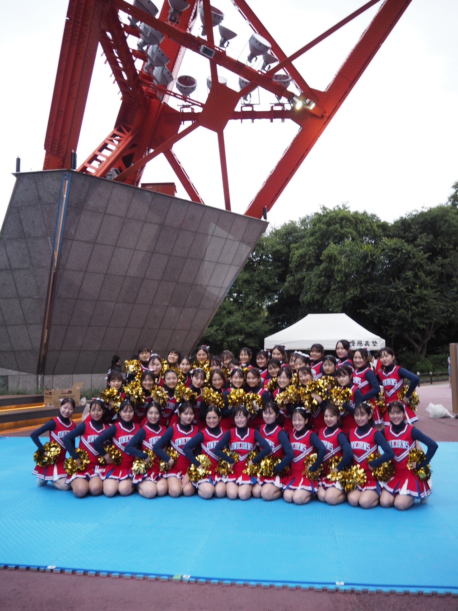 はじめまして!私達ユニコーンズは、「応援」から派生した「競技」チアリーディングを専門としています。人を飛ばしたり、回したり、アクロバティックな技を中心に演技します。大会や、七夕祭、三田祭で演技をするのが主な活動です。また、アメフトなどの試合のハーフタイムで応援演技をすることもあります。私達は、常に目標を持って日々練習をし、一致団結しているチームです。