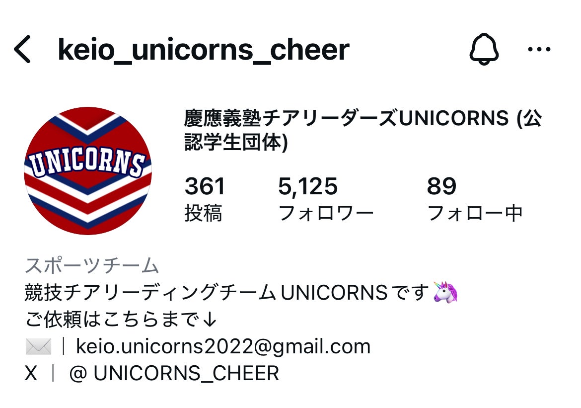 UNICORNS公式アカウント(@keio_unicorns_cheer)にて、紹介させて頂きます。
