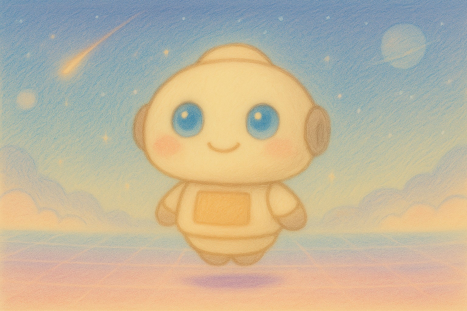優しいパステルカラーを基調に、星や光がきらめく幻想的なAI空間が広がります。