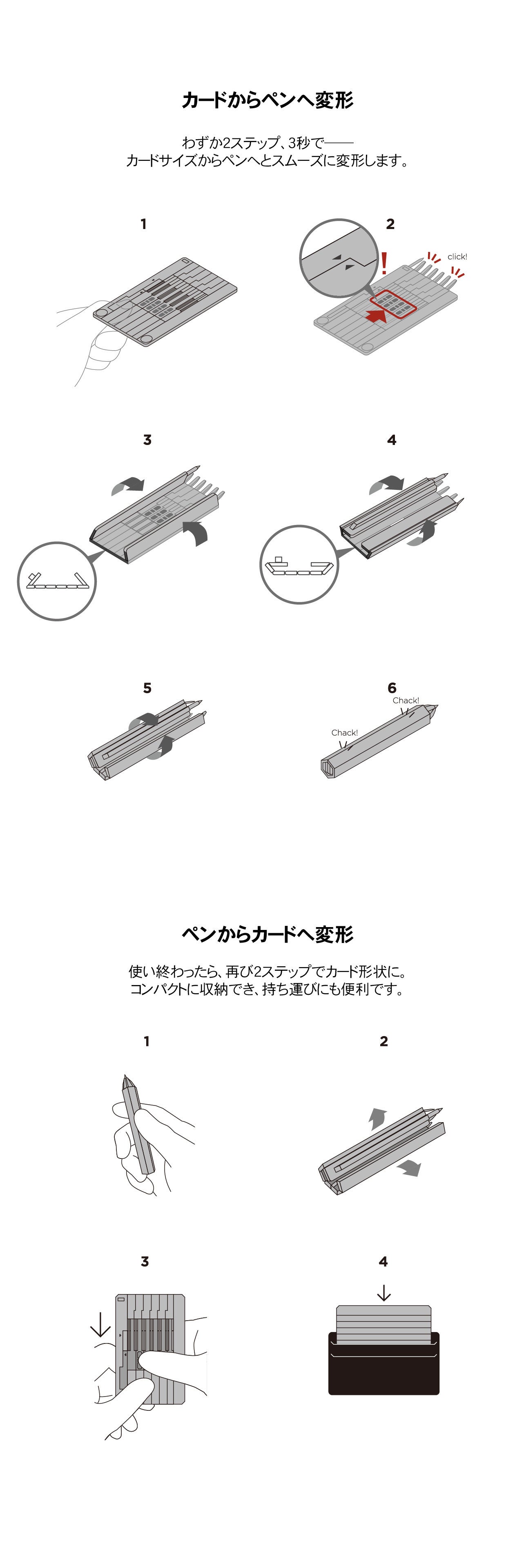 カチッと音を立ててペンに変形する、
