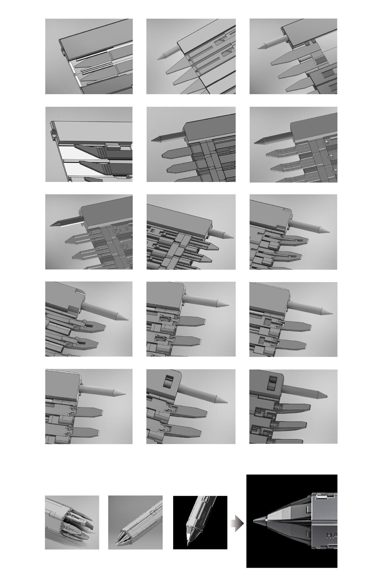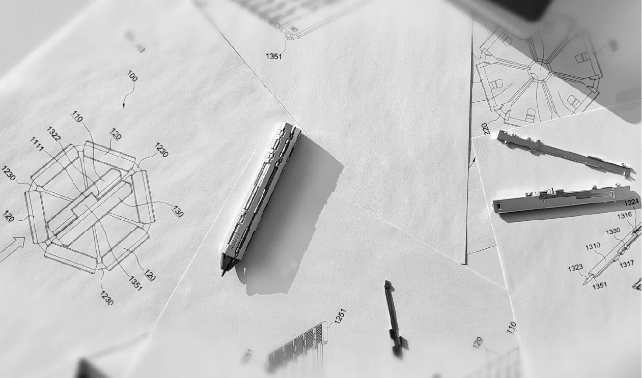 特にペン先を支える構造は、カード状からペン形状へと変形するため、極めて特殊なエンジニアリング設計が求められました。