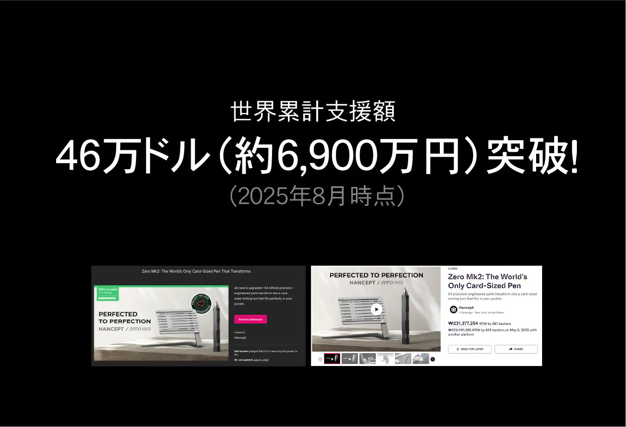 HANCEPT ZERO MKⅡは、2025年のKickstarterで664名から約6,900万円の支援を集めました。アメリカ、ヨーロッパ、アジア。 世界中のミニマリストとEDC愛好家から支持された理由。