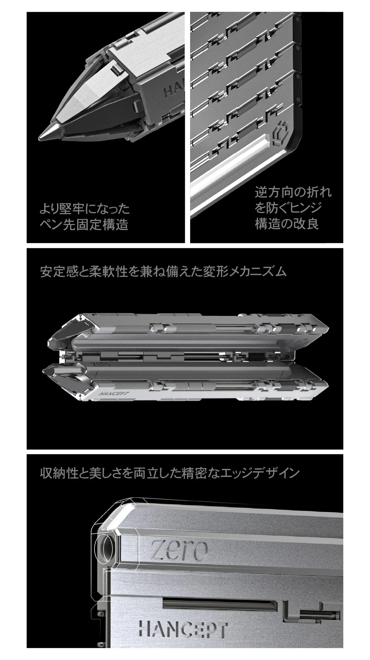 HANCEPT zeroの核心技術であるヒンジ構造は、