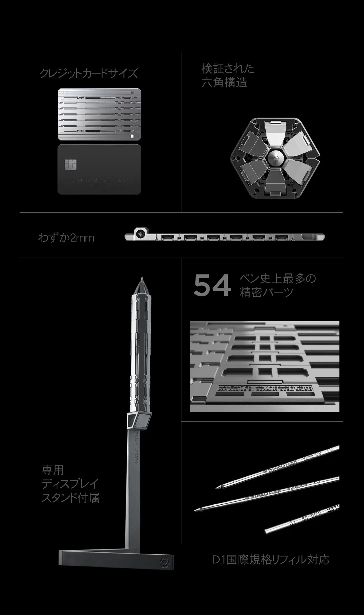 ZERO MKⅡは、全54個の超精密パーツで構成されています。これは、ペンの歴史上でも類を見ない構造です。