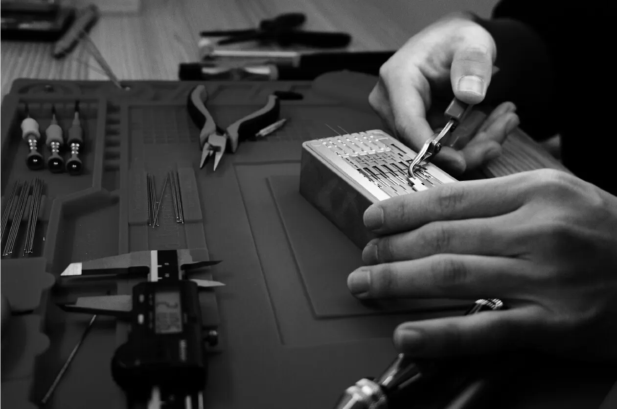 組立は、熟練した職人の手により、一工程ずつ丹念かつ精密に行われています。