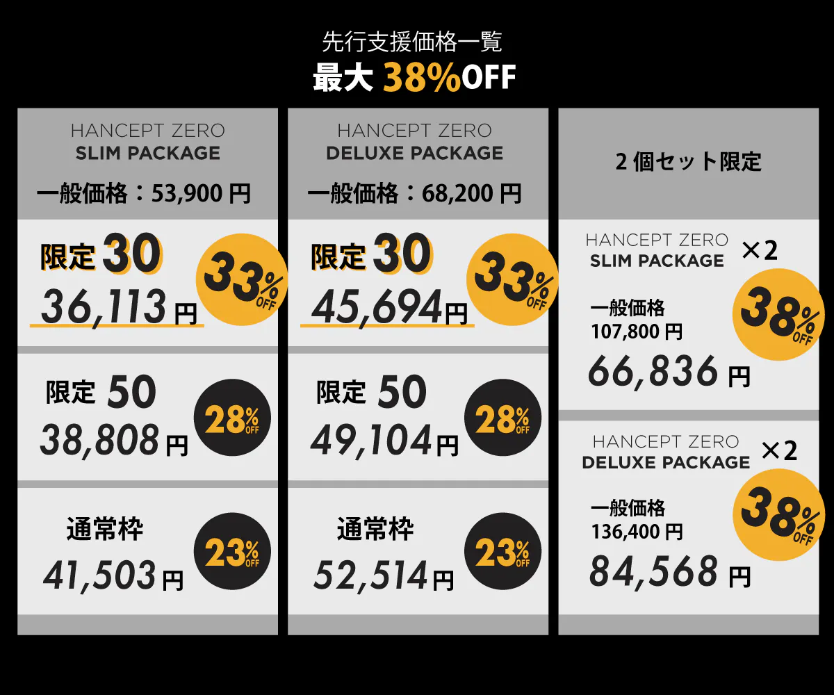 先行支援価格は、一般販売予定価格より最大38%OFF。この価格で手にできるのは、今回が最初で最後です。