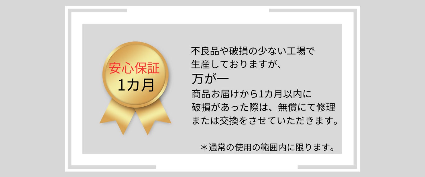 A. 商品管理には万全に心掛けておりますが、万が一商品に欠陥があった場合は到着から1カ月以内にご連絡くださいませ。商品の状態に応じて、ご交換にてご対応いたします。その際の送料は弊社負担とさせていただきます。ご使用後の返品またはご交換は致しかねますので予めご了承くださいませ。