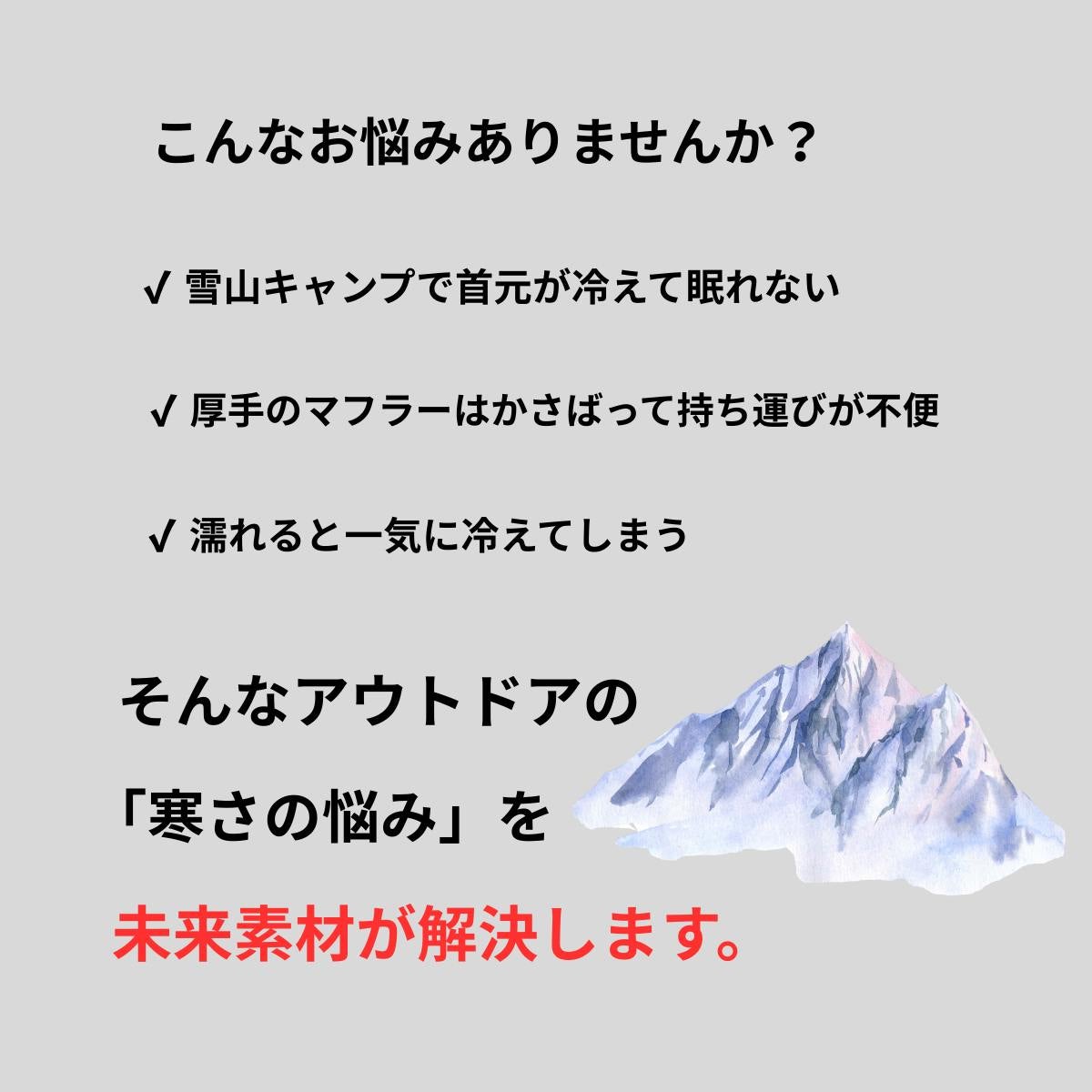 「極寒アウトドアの寒さを解決する、未来型マフラー&ブランケット」