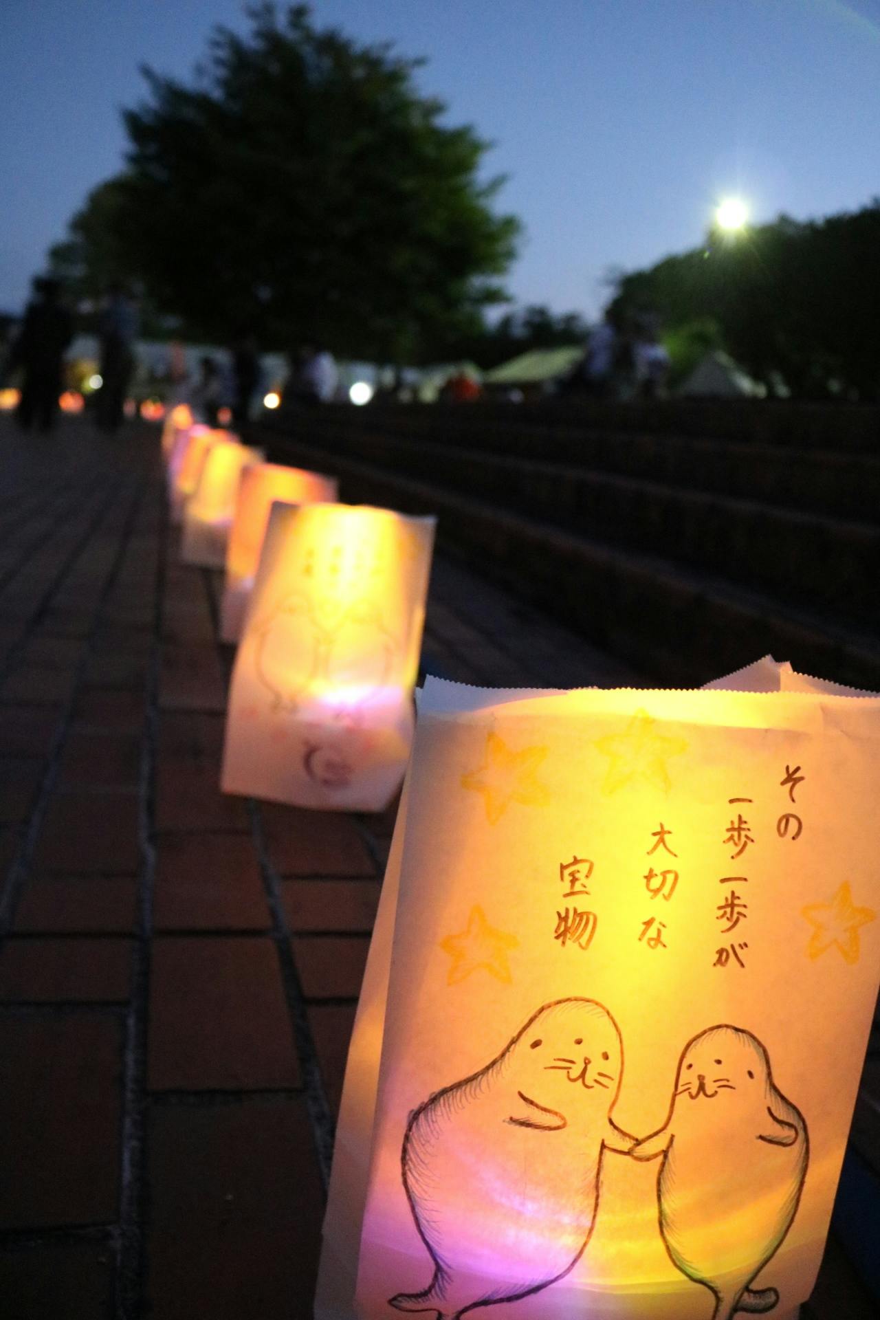 がんで亡くなった方や闘病中の方へのメッセージをキャンドルの光で浮かび上がらせます。