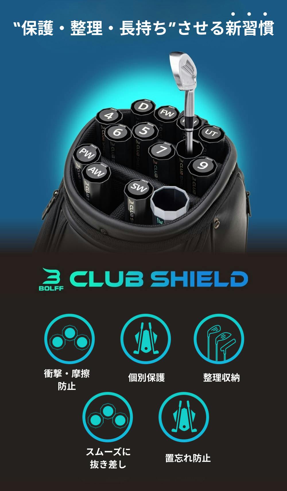 クラブシールドは、「保護する」だけでなく、ラウンド中のストレスをなくすための“使いやすさ”にも徹底的にこだわっています。