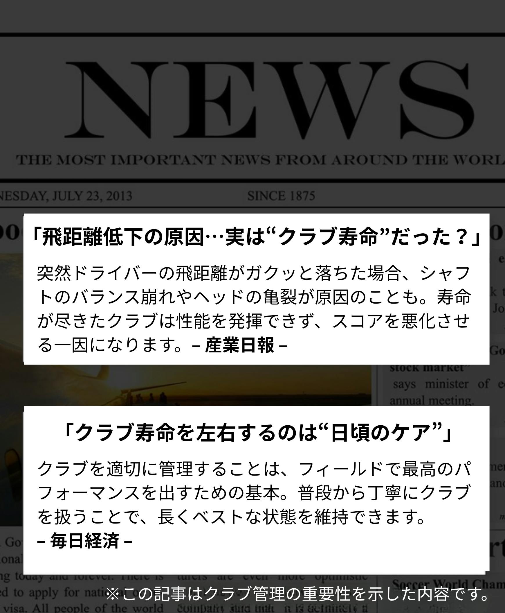 ・推奨されている使用方法以外のご利用や、不注意によるトラブル(クラブの損傷など)については責任を負いかねます。