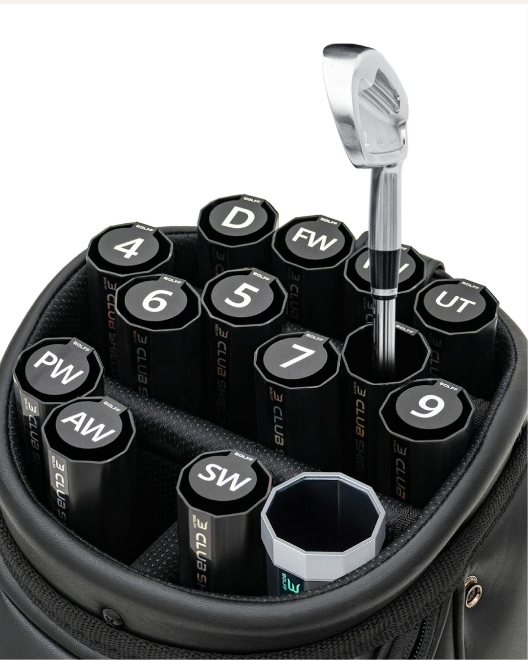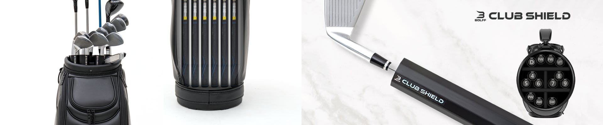 Club Shieldなら、クラブが自然とまっすぐ整列し、バッグの中がいつ見ても美しい状態に保たれます。