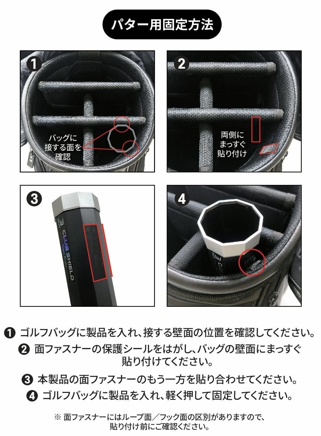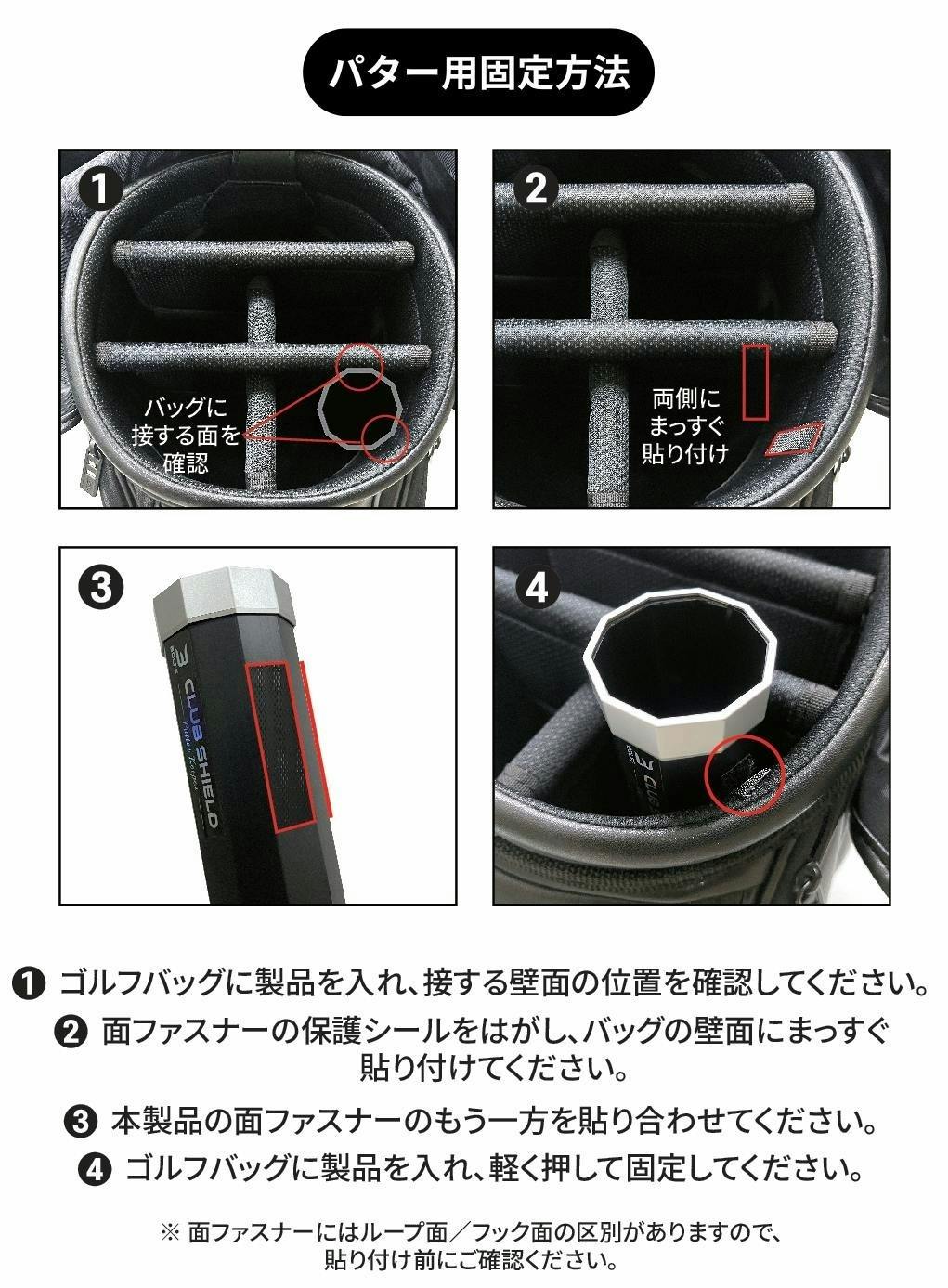クラブシールドのパター専用モデルは、内部の底上げクッションで最適な高さに調整され、急いでいてもぶつけずスッと扱えます。
