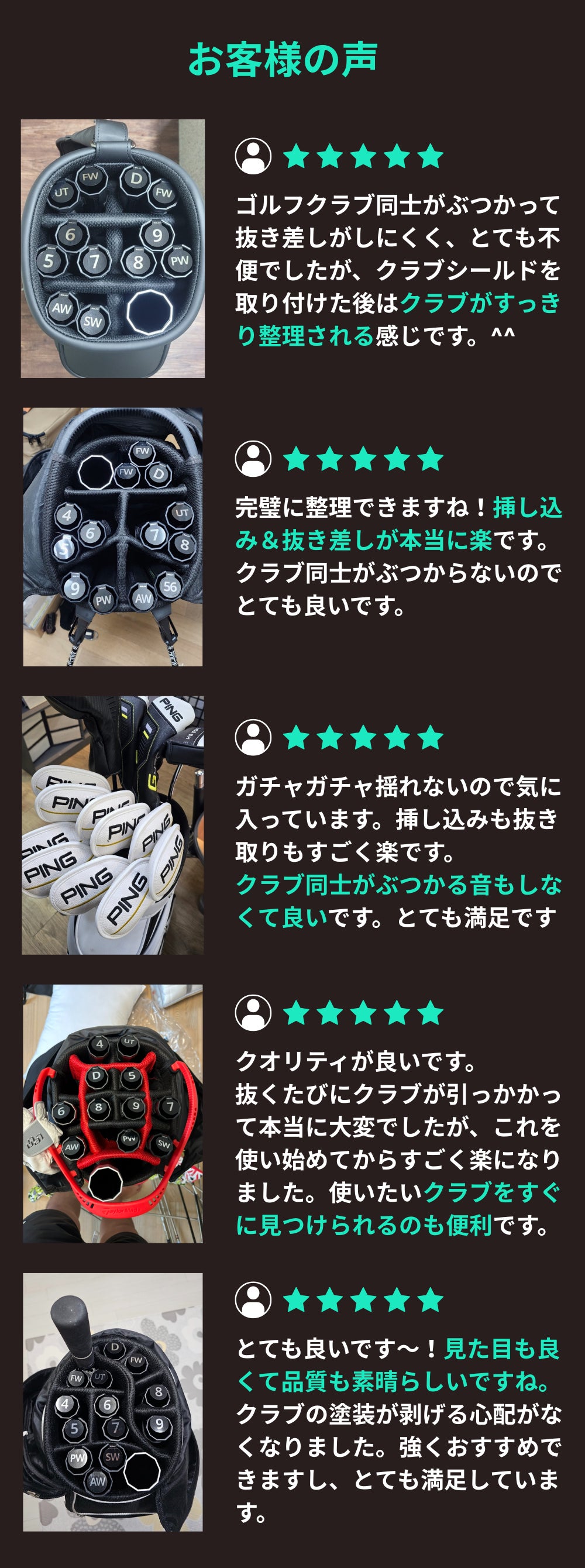 クラブシールドなら、絡まり・引っかかり・同時持ち上がりを解消。バッグからスッと引き出して、スッと戻せる。プレー中の小さなストレスを減らし、集中力を切らさない、快適なプレーをサポートします。
