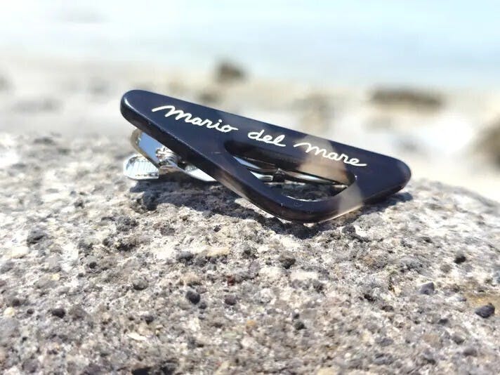 洋服やバックにクリップするだけで、スマートに装着。上質なイタリア製の素材を使用し、アクセサリーのように、コーディネートのワンポイントとして活躍します。