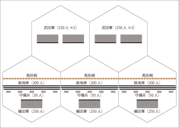 1ユニットのスケールは、基本的に250人です。鉄炮衆は銃手200人+守備兵50人、長篠籠城衆は50人となっています。