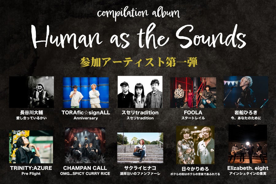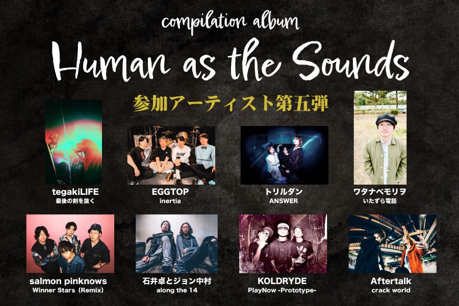 ※画像の楽曲名に誤りがありましたので修正させて頂きました(2/10)いつもありがとうございます。Asakusa Gold Sounds 店長の丸山です。ついに皆様からのご支援が200万円に到達しました!ご支援・拡散のご協力ありがとうございます!本日の活動報告は、コンピアルバムの参加者 第五弾発表です!『東京浅草EGGTOP!』と浅草を背負ってくれた4人組、Gold Soundsの最終ブッキングのトリを務めたEGGTOPキャリアを重ね、縁がかさなりGold Soundsへと辿り着き、浅草がホームだと言ってくれるまで、音楽を通じてわかり合えた tegakiLIFEAftertalkがAftertalkのままでいられたのは浅草のおかげとGold Soundsとの出会いを運命のように語ってくれる Aftertalkアコ/バンド問わずGold Soundsレギュラーの出演陣と深く交流し、毎年のように生誕祭で浅草を賑わせてくれる ワタナベモリヲライブハウスでの活動開始とほぼ同時に浅草と出会い、浅草でバンドの進化・成長を重ねてきた salmon pinknowsSHUとの関わりも深く、Gold SoundsのOPEN当初から出演を重ねGold Soundsには欠かせない存在のスリーピースバンド、トリルダンSHUと縁の深いメンバーを中心にGold Soundsとほぼ同時期に結成し、Gold Soundsのシーンで存在を轟かせてきた KOLDRYDE旧店舗のこけら落としを務め、Gold Soundsにとってはかけがえない唯一無二の特別なツーピースバンド 石井卓とジョン中村以上八組が、第五弾、コンピアルバム参加者になります!今回の発表でコンピアルバムは総勢48組が参加となりました!今回でコンピ参加者の発表は一段落して、次回の活動報告からは各リターンの紹介などもしていきますので引き続きチェック宜しくお願い致します!Asakusa Gold Sounds 一同