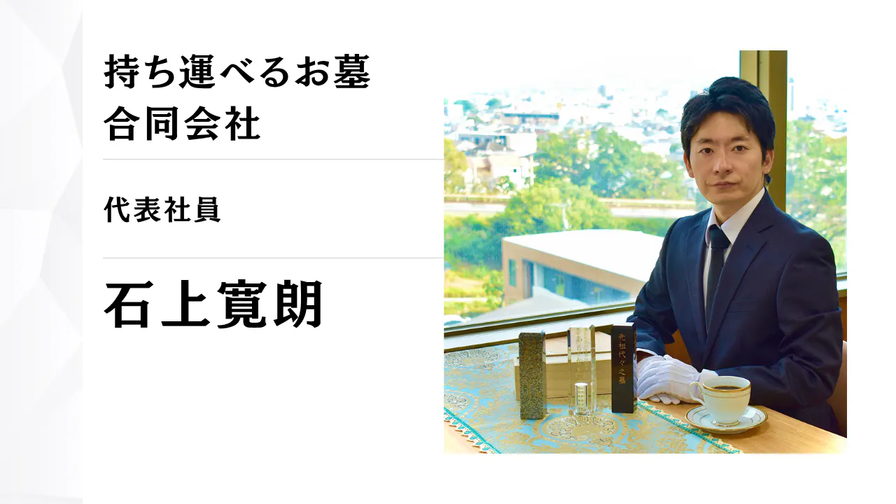 はじめまして。「持ち運べるお墓 合同会社」代表の石上と申します。