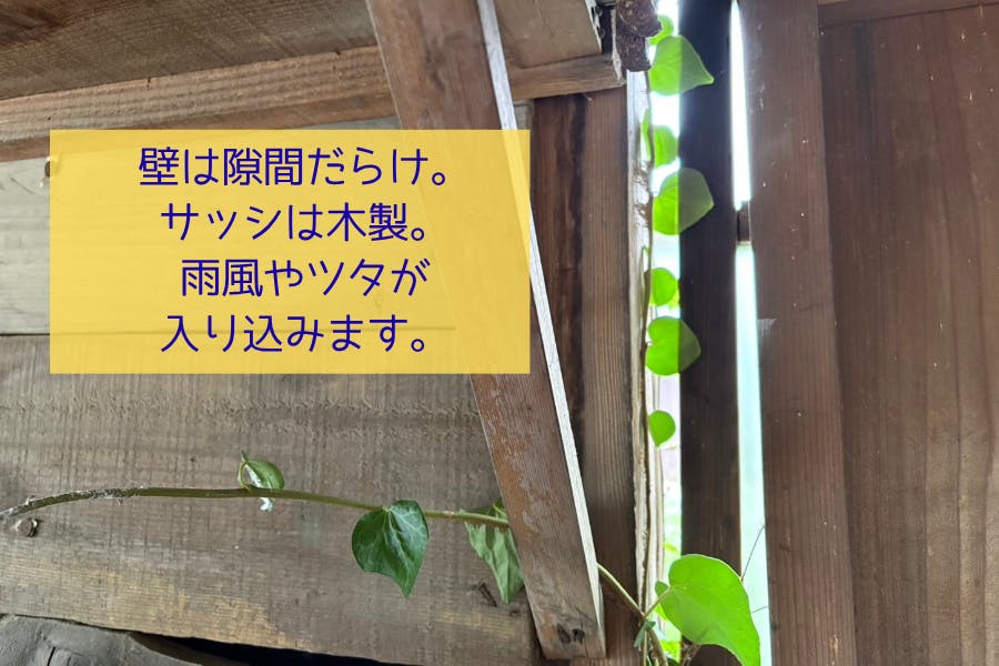 暑さをしのぐためのシェルターが急務ですが、「ほっと館」には断熱機能も水道・電気もないため、暑さ寒さをしのげません。