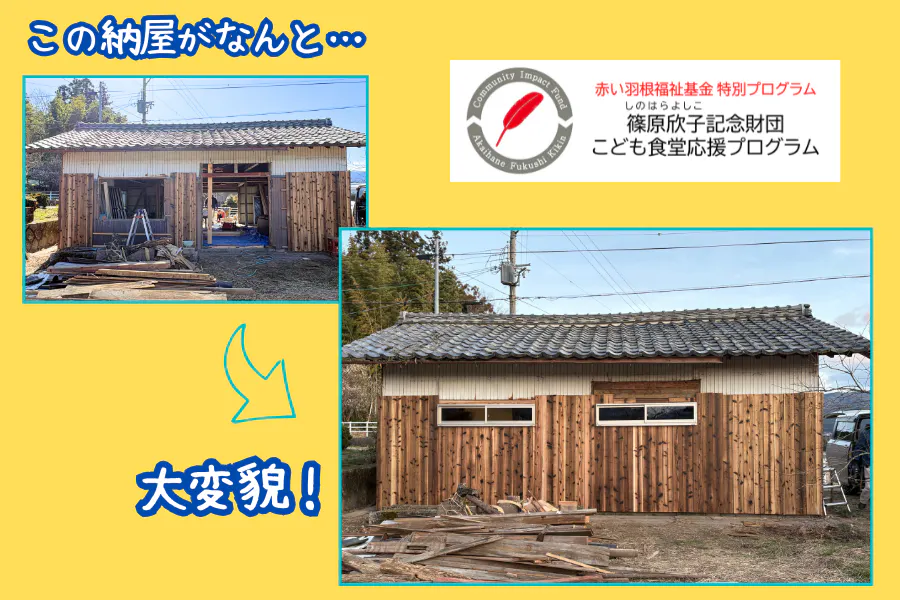 2026/03/31 21:24クラウドファンディング終了から早2か月。ほっと館のDIY改修はおかげさまで順調に進んでいます。大工さんにご指導いただいての本格的な改修作業は、床張りからスタート。週末を中心に、地域の皆さんがご協力くださっています。現在は壁板を張る作業をコツコツと。1月末のクラファン終了後もご支援の輪は広がり続け、おかげさまで、インターネット経由の163万8,000円の他に、お手渡しやお振込み等で70万3,355円(3月末時点)となっています。皆さまの温かいお気持ちに心より感謝申し上げます。さらに嬉しいご報告です。この度、篠原欣子記念財団様の「こども食堂応援プログラム」に採択いただき、中央共同募金会・赤い羽根福祉基金を通じて50万円の助成をお受けできることになりました!クラファンでのご寄付と併せて、改修費用として大切に使わせていただきます。募金で支えてくださった皆様、ご指導いただいている大工さん、頼もしいボランティアの皆さん、手伝ってくれている子どもたちや保護者さん、全てに感謝の日々です。改修や普段の遊び場の様子はSNSでも発信しています。ぜひ覗いてみてくださいね(^-^)https://www.facebook.com/share/1NzVuNu566/?mibextid=wwXIfrhttps://www.instagram.com/ajikko_maibara?igsh=dXNycTE3d2Rlazc1&utm_source=qr もっと見る