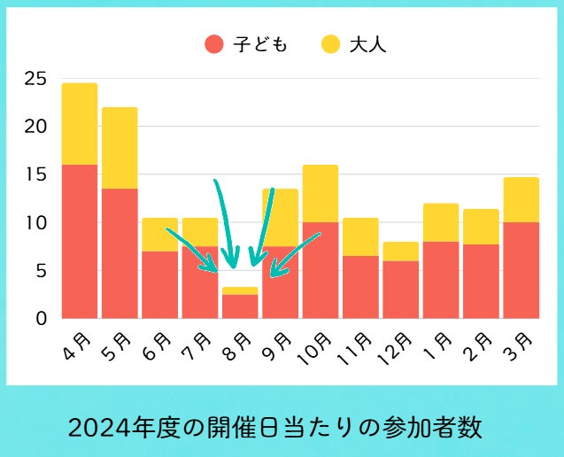 あじっこパークではここ数年、特に8月の参加者が激減しています。