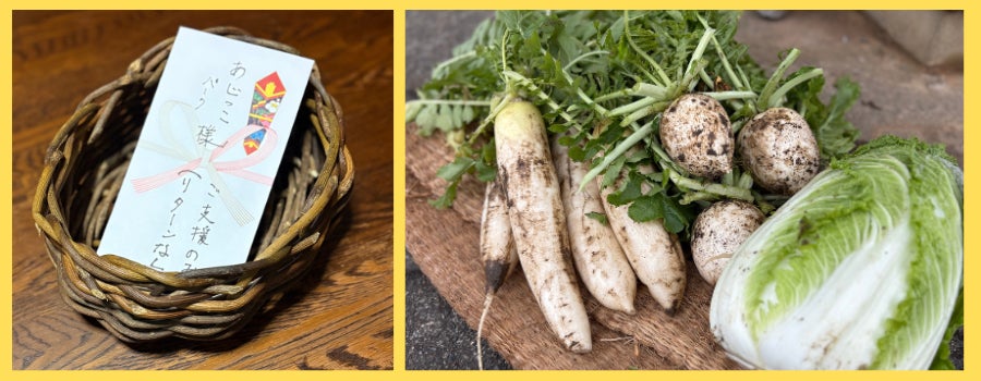 ↑ご寄付くださった近所の方にお礼に伺ったところ、「子どもらにやってな」と取れたて野菜をどっさりいただいてしまいました。大野木の皆様の温かさに感謝の日々です。