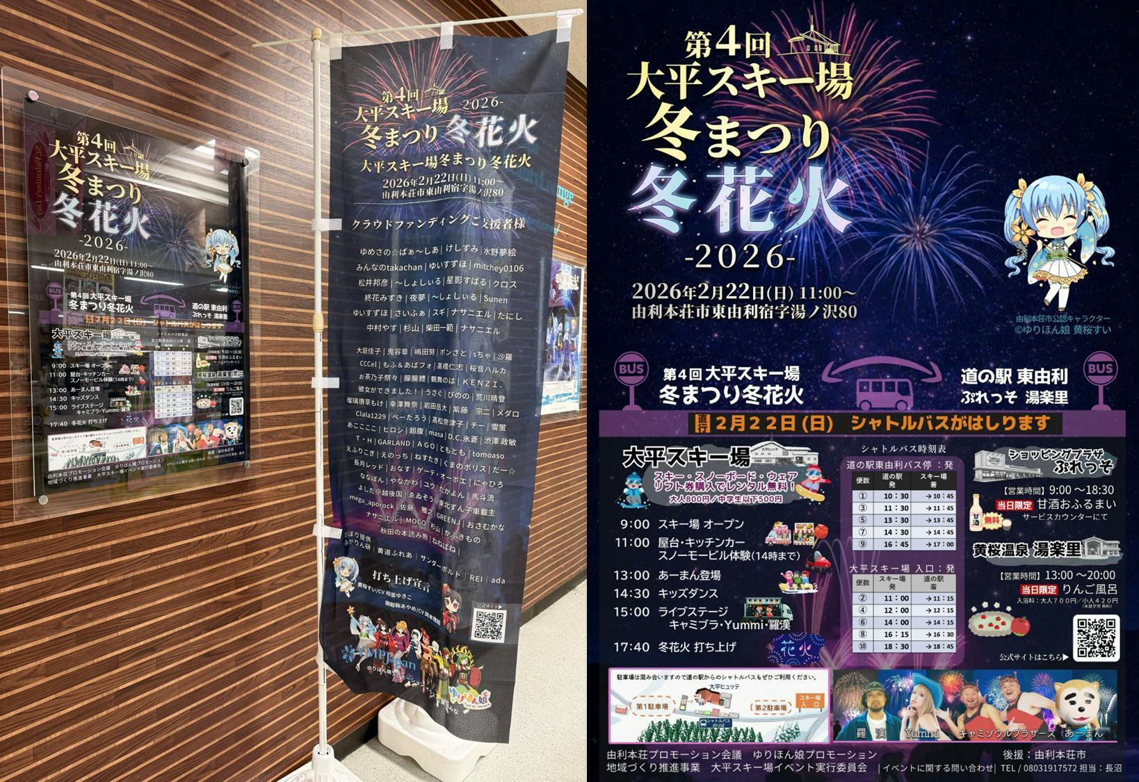 第4回 大平スキー場 冬まつり冬花火 の様子が、由利本荘市ケーブルテレビの特集として放送され、YouTubeにも公開されました!ぜひこちらからご覧ください☟当日の賑わい、子どもたちの楽しそうな声、そして雪の夜空に広がる感動的な花火――あの時間の空気を、映像でもう一度感じていただけると思います。由利本荘市ケーブルテレビさんには、第1回目の冬花火から毎年しっかり取材していただいています。それだけ、この小さなスキー場の挑戦が地域の中で大きな話題となり、多くの方に見守られてきた証でもあります。そして動画の中で語られている実行委員長の言葉が、このイベントのすべてだと思います。次世代につながる楽しい催しを目指していくこの冬花火は、ご支援くださった皆様一人ひとりの力で実現したイベントです。だからこそ、この映像を見ながら「これ、俺たちがやったんだぜ」そんな誇らしい気持ちを、支援してくださった皆様と一緒に共有できたら嬉しいです。春が訪れる頃まで、あの冬の夜の余韻を、もう少しだけ一緒に楽しみましょう。改めまして、本当にありがとうございました。これからの活動報告も楽しみにお待ちください!