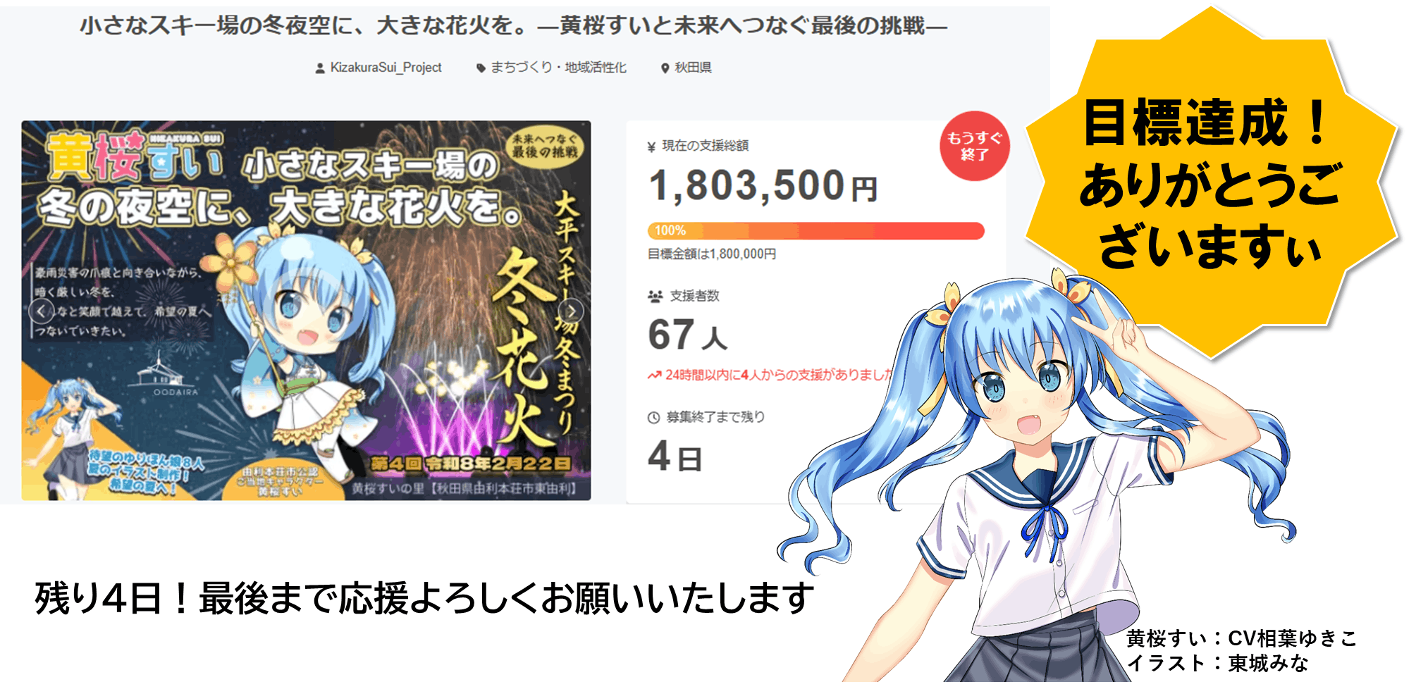 皆さまの応援が、この花火を空に打ち上げます。最後まで、どうぞよろしくお願いいたします。