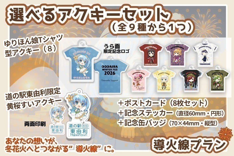 【22,000円/尺玉プランA】Tシャツ型アクキーコンプセットゆりほん娘Tシャツ型アクキー8種+道の駅限定すいアクキー+ポストカード+ステッカー+缶バッジ+マウスパッド。