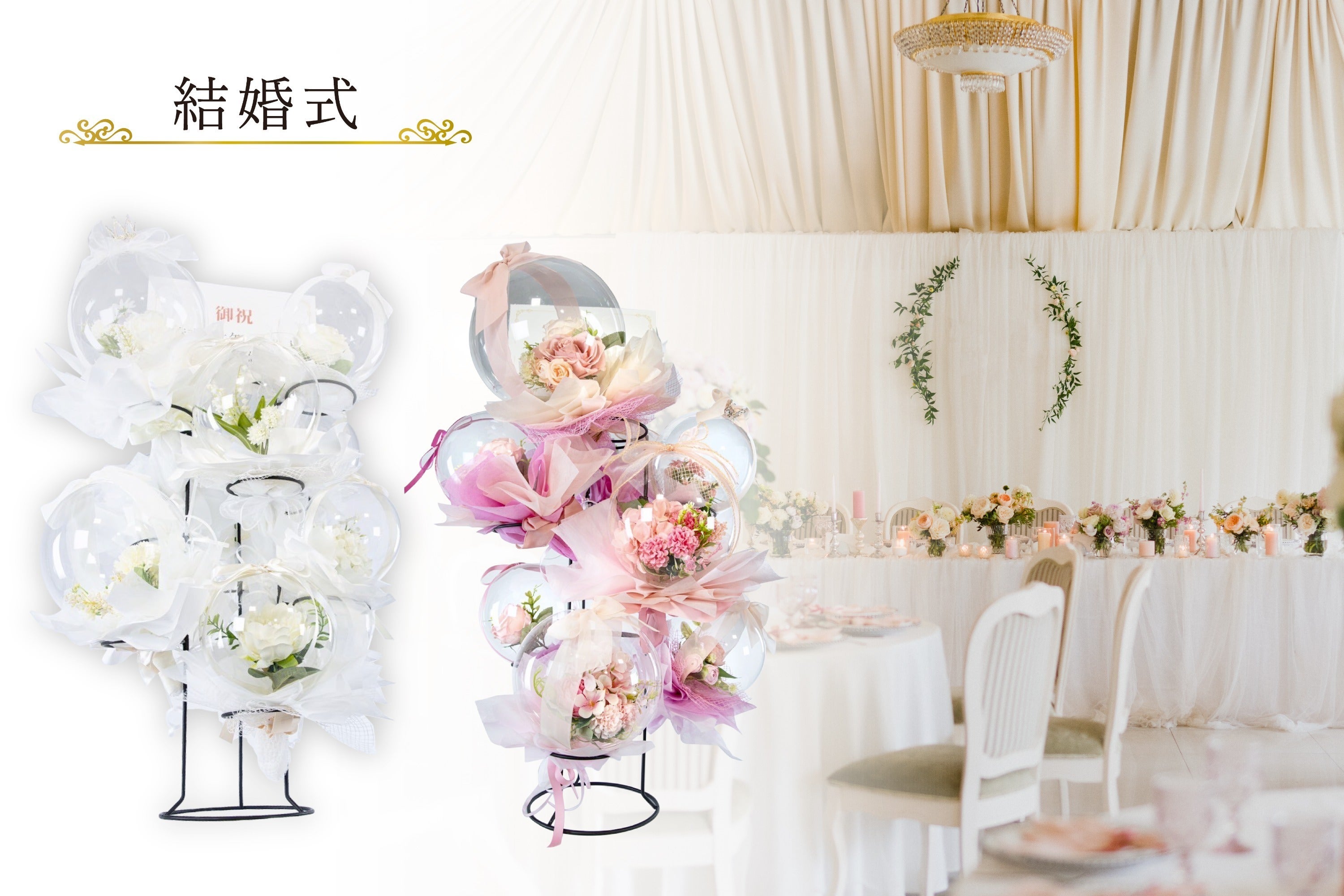 花では表現できない立体感で、空間全体を“祝福の景色”に変えます。