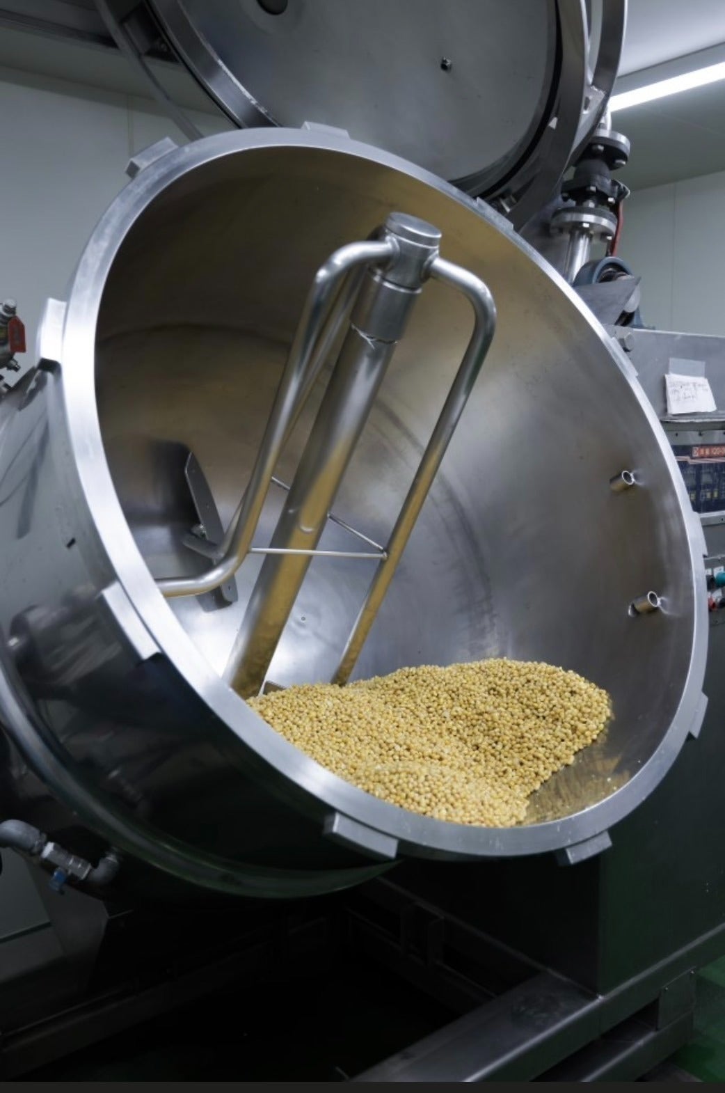 この機械は、大豆ペーストを常温で長期保存(半年~1年)可能にするための最終工程を担う、絶対に不可欠な存在です。