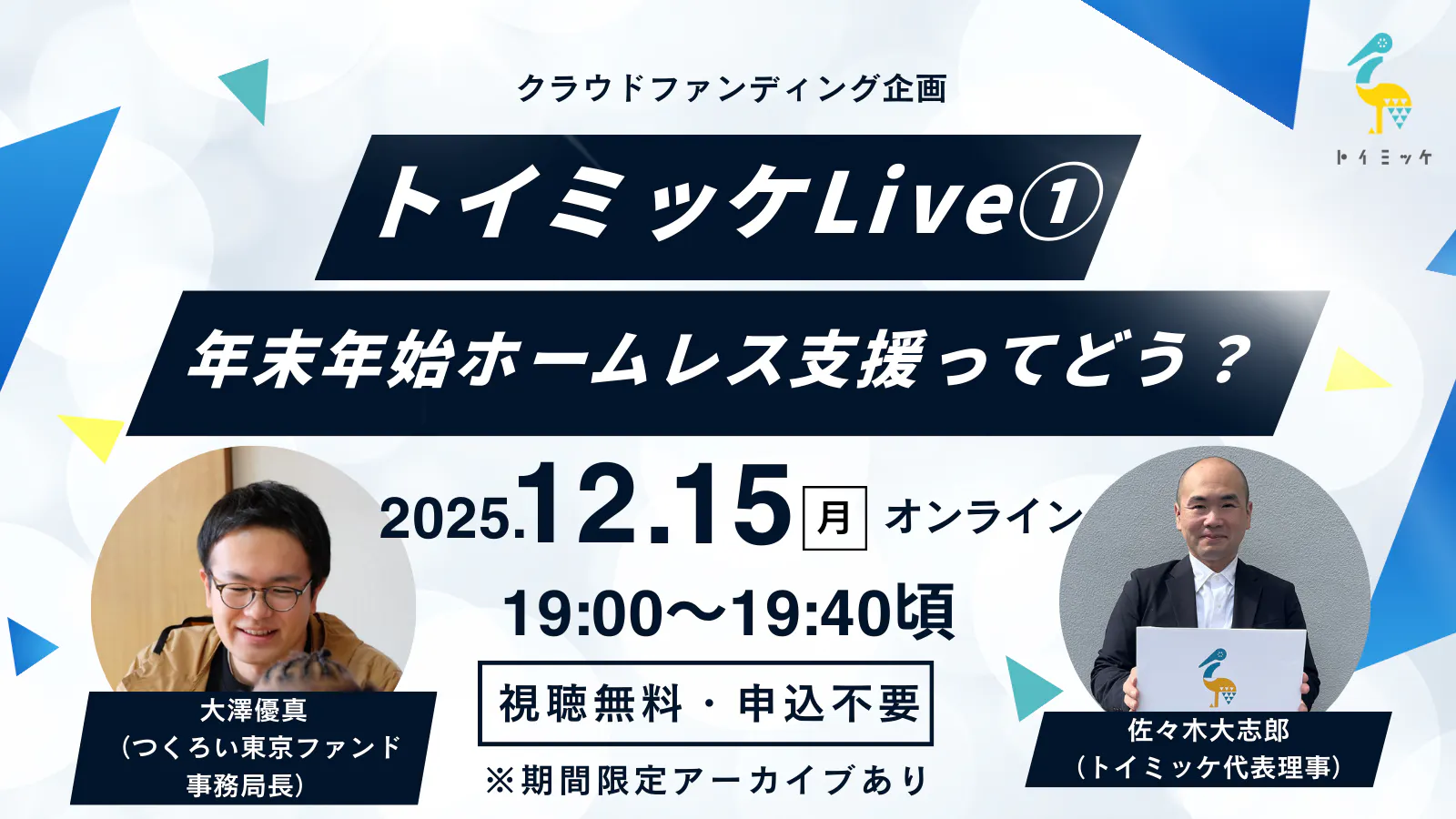 ①トイミッケLive①:「年末年始ホームレス支援ってどう?」