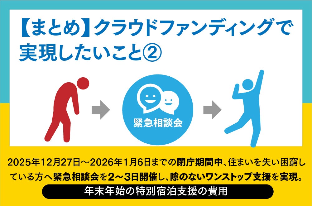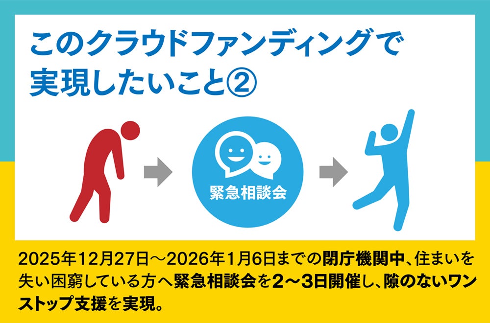 今回のクラウドファンディングのふたつめの目的は、この年末年始の臨時相談会を実施するための費用をご支援いただきたい、というお願いです。