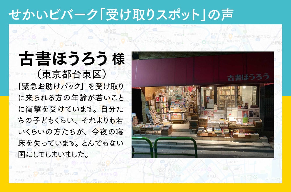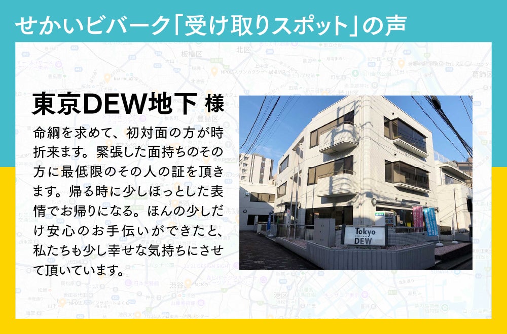 「せかいビバーク」自体ですでに56の法人・団体に受け取りスポットとして協力いただき、またそこから先も、連携団体や専門職、公的支援につなぐ人たちと一緒に命の元へ駆けつける支援を続けています。