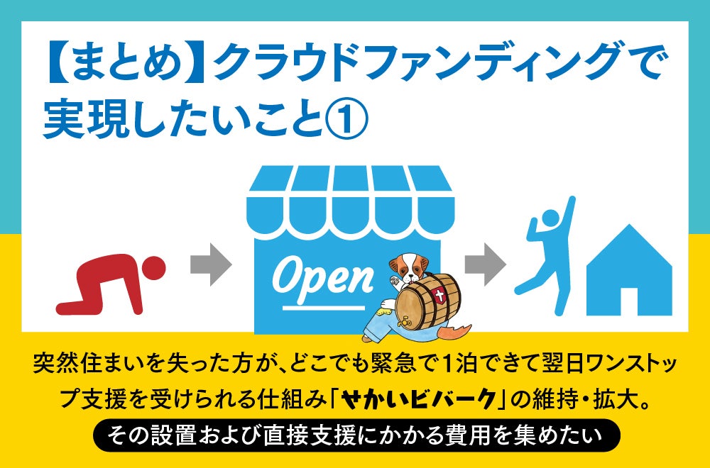 そのためには、私たち一団体の力だけでは到底足りません。どうか、本クラウドファンディングへの応援のかたちで、あなたの力を貸してください!住まいを失った方に、あたたかな一夜と、その先の安心につながる道をひらくため。